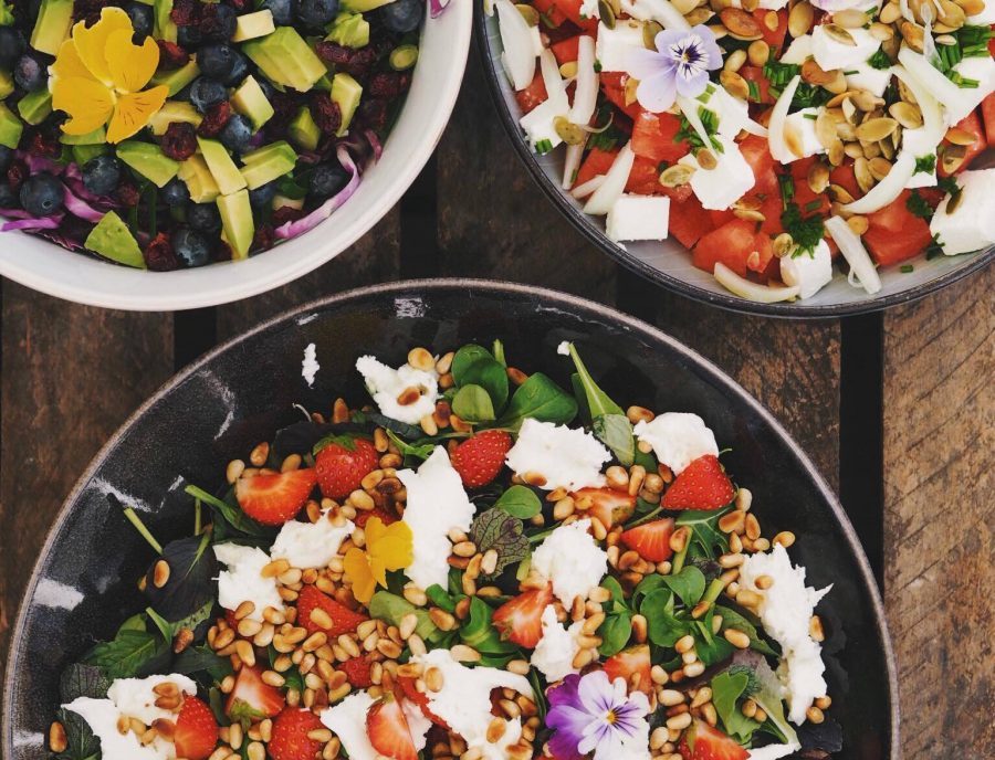 For nogle uger siden sendte jeg live på Instagram, og der var flere der efterspurgte opskrifter på andet end kager, f.eks. salater. Så er det jo rigtig heldigt at ligeså meget, som jeg elsker at bage, lige så meget elsker jeg også at trylle med ”rigtig” mad i køkkenet. Det er stort set altid mig der laver salaten til aftensmaden, og jeg elsker det. Det lyder måske mærkeligt, men jeg elsker at skylle, snitte og hakke. Og salaten er jo en uundværlig spiller i et hvert måltid. Disse 3 salater er mine yndlingssalater, så de er tit på menuen, og de er super nemme at lave og kan varieres i det uendelige. Jeg bruger dem både som tilbehør og som frokost salater, hvor jeg evt. supplerer med lidt kød eller fisk og hjemmelavet humus eller tzatziki.