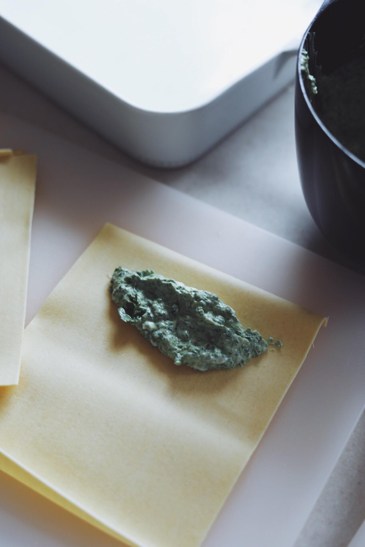 Hak spinaten fint i en minihakker. Bland ricotta med citronskal og salt og peber. Tilsæt spinaten til ricottaen og smag det til.