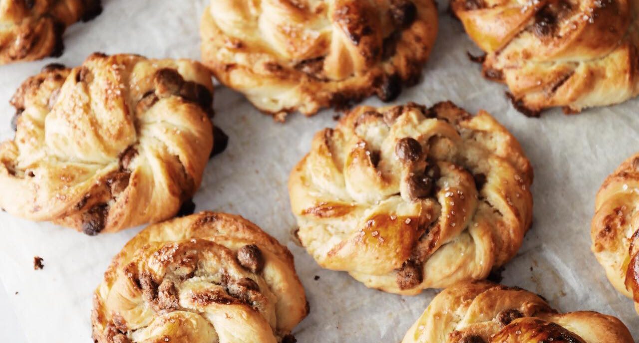 Årh, duften af hjemmebag! Det er der intet der slår. Disse snurrer med chokolade og marcipanfyld er helt uimodståeligt gode! Sprøde udenpå og bløde og luftige indeni. Det er ikke spor svært at lave snurrer! Jeg har prøvet at lave en step by step guide, hvis du alligevel synes, at det er en anelse svært det med snurrer. Rigtig god fornøjelse!