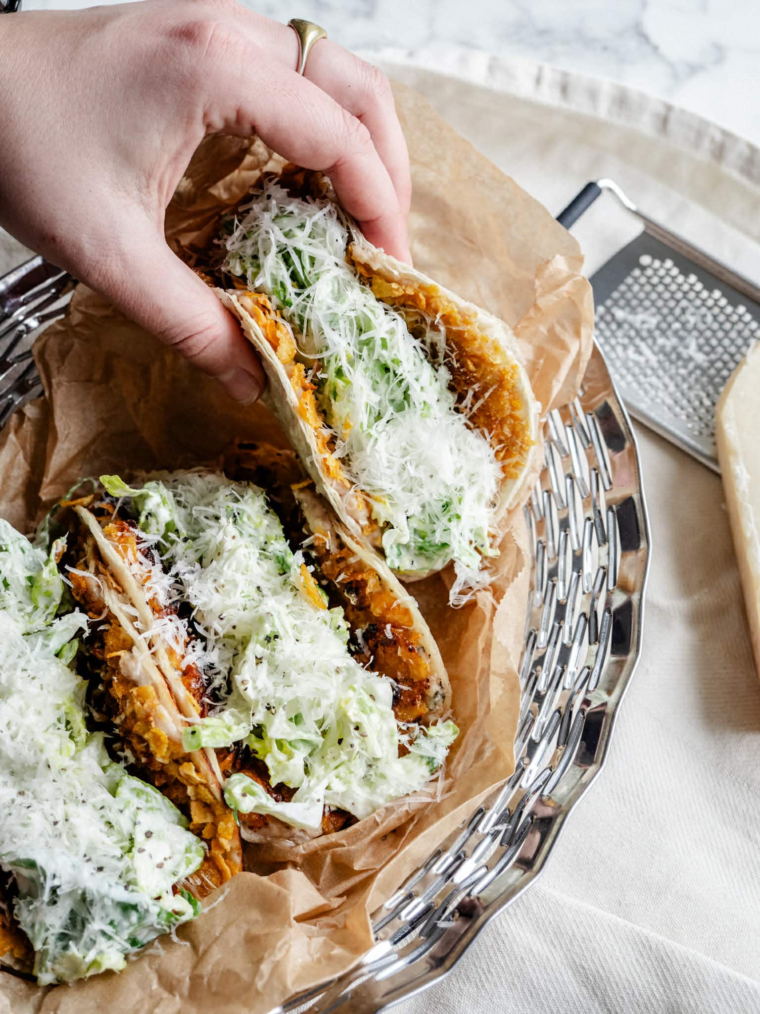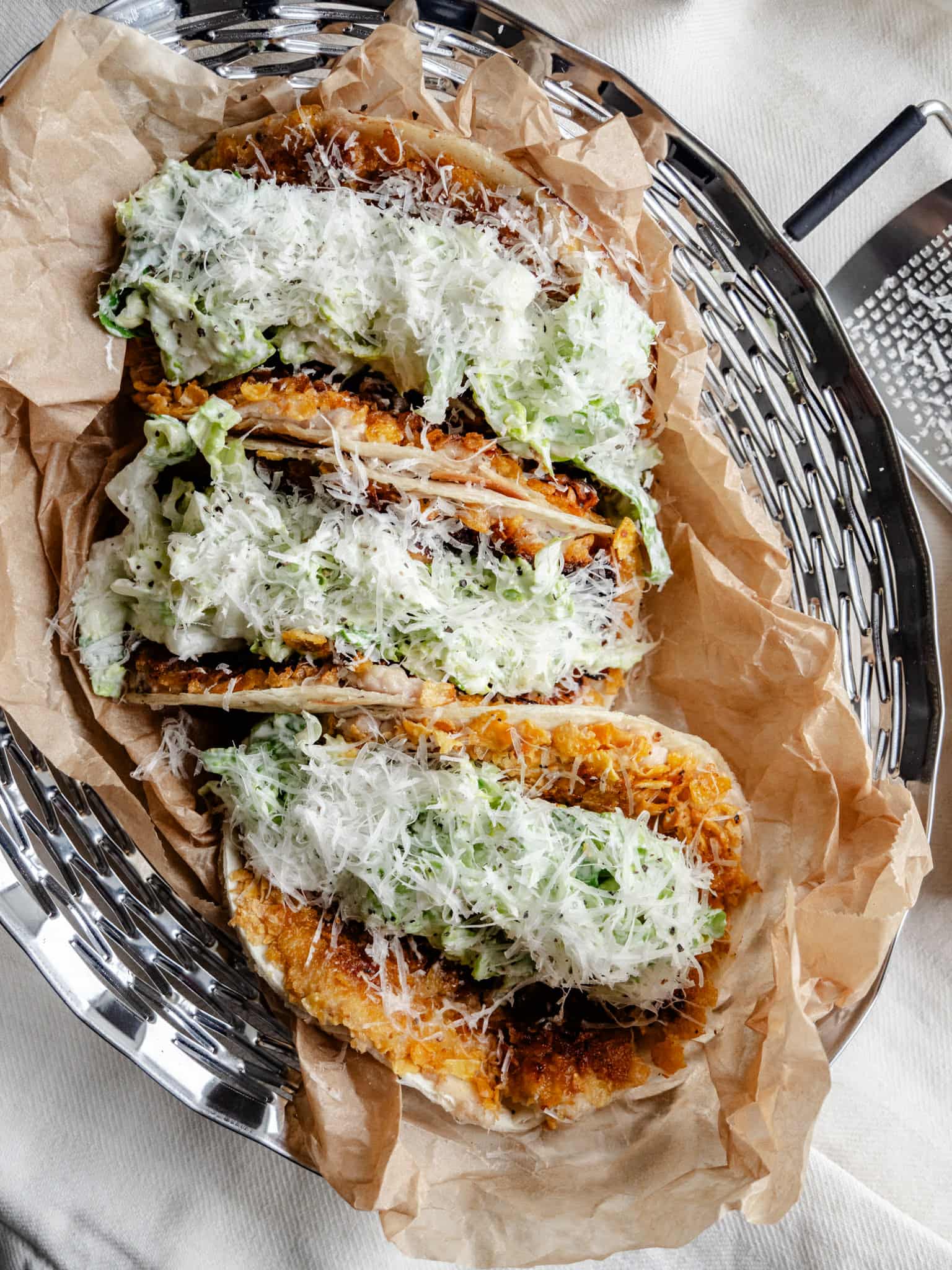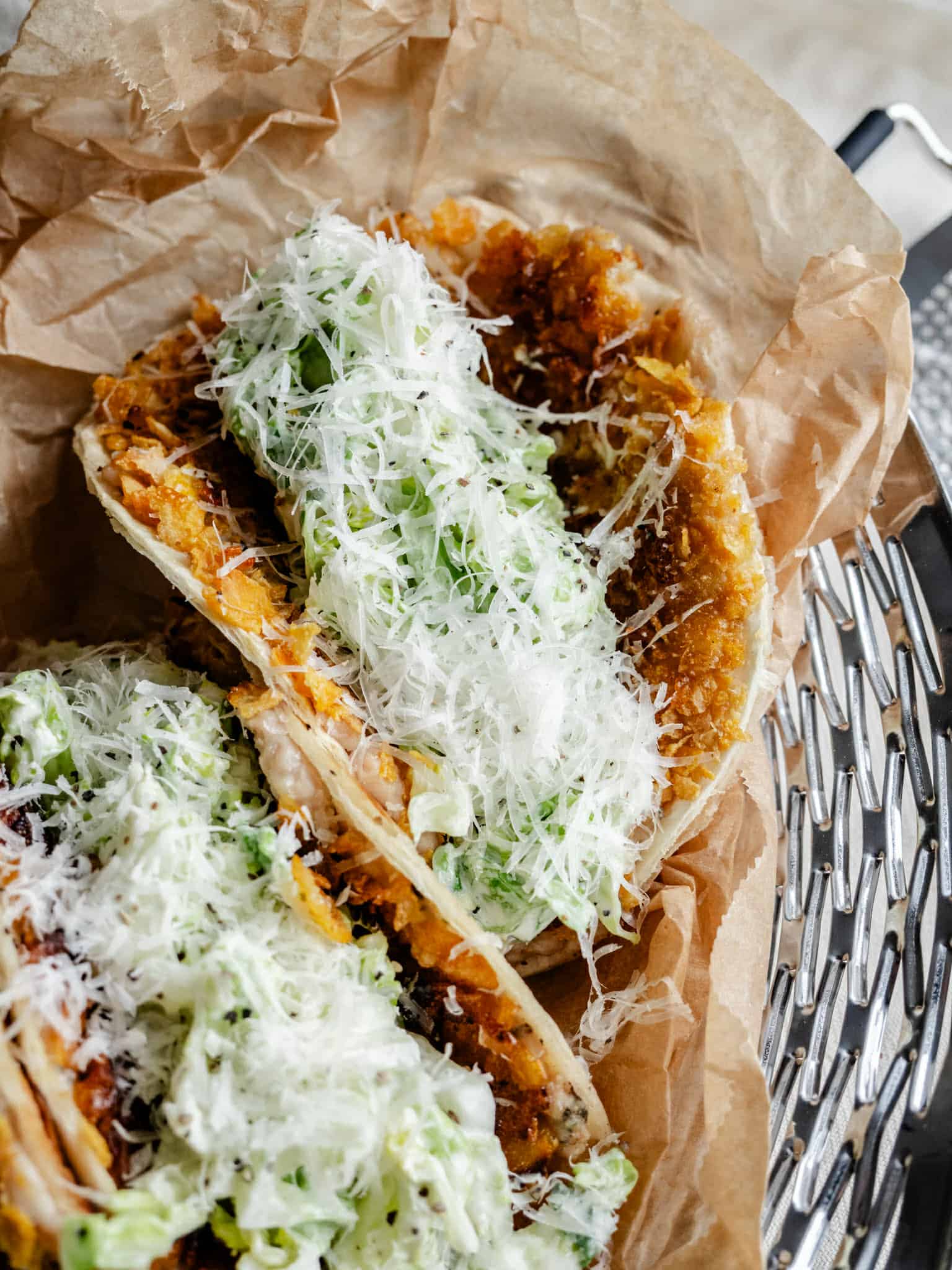 Crispy Chicken Cæsar TacosFremgangsmåde