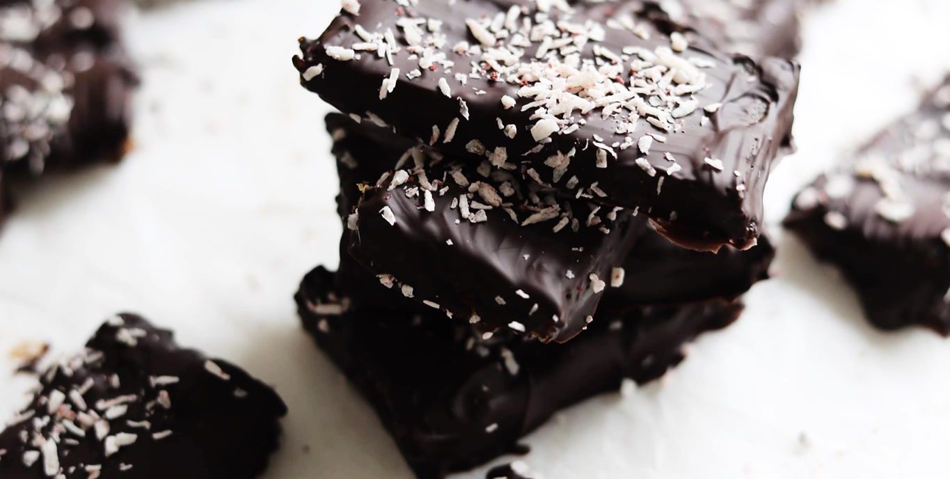 Smelt chokoladen og dyb barerne i chokoladen eller pensl chokoladen på. Drys med kokosmel og stil barerne på køl til chokoladen har sat sig. Opbevar dem herefter i en luftæt beholder. Velbekomme!