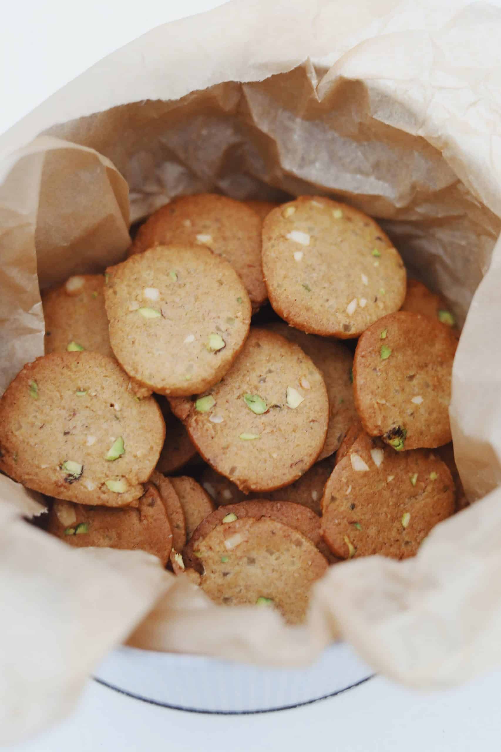The world’s best danish gingerbread – Recipe for delicious danish gingerbread with almonds and pistachios. No Christmas without delicious, crispy, butter-baked gingerbread! The smell that spreads in the kitchen when you swing a plate of freshly baked gingerbread out of the oven is the epitome of Christmas for me. I dare to call these danish gingerbread the best in the world – they are perfectly crispy and are perfectly spiced without being too strong in taste.