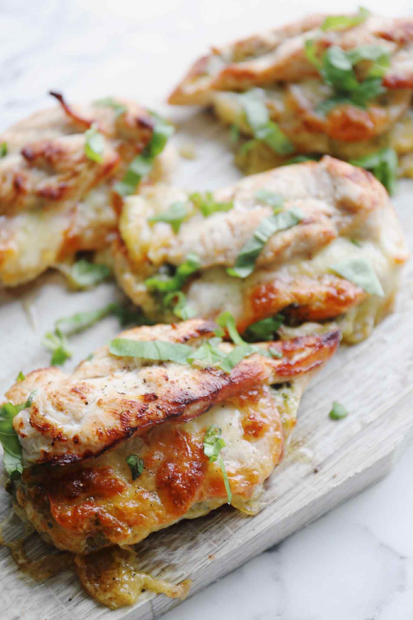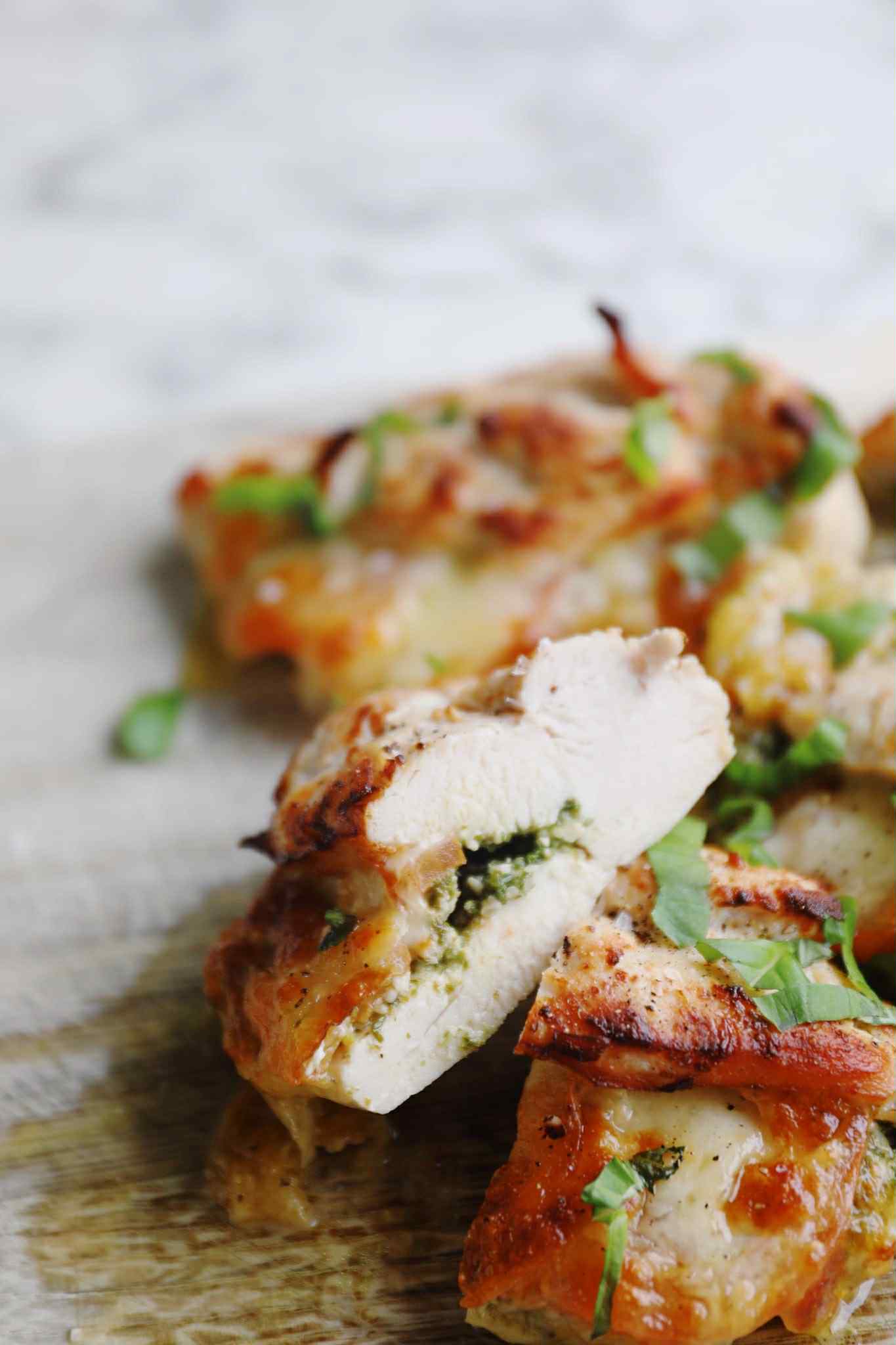 Fyldt kyllingebryst med pesto, tomat og mozzarella