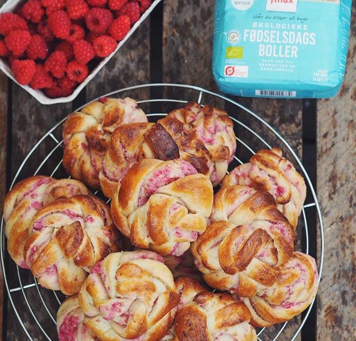Denne gang har jeg brugt Finax Økologiske Fødselsdagsboller til at bage lækre sommerlige hindbær-marcipan-snurrer. Du kan bruge denne melblanding til mange forskellige ting f.eks. kanelsnegle, brunsviger og selvfølgelig dejlige fødselsdagsboller (få mere inspiration af Finax her).