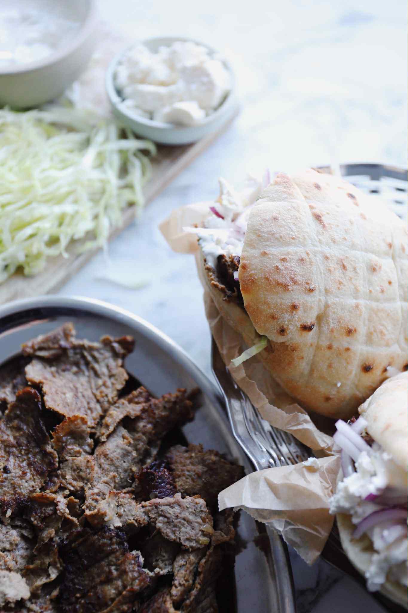 Hjemmelavet kebab – Opskrift på hjemmelavet krydret kebabkød bagt i ovnen i bagepapir. Det er super nemt at lave hjemmelavet kebabkød, som næsten smager som det rigtige kebabkød, som man kan få i pitabrød eller fladbrød. Kebabkødet laves ved at køre hakket oksekød med løg, hvidløg, græsk yoghurt og krydderier i en foodprocessor til det er helt ensartet. Massen rulles herefter helt tyndt ud imellem bagepapir, som rulles sammen og kødet bages så i ovnen. Kødet bliver nærmest “kogt”, når det bages indeni bagepapiret. Når kødet er færdigt, så trevles det i lidt mindre stykker og steges kort på en pande ved høj varme. En perfekt familievenlig aftensmad.