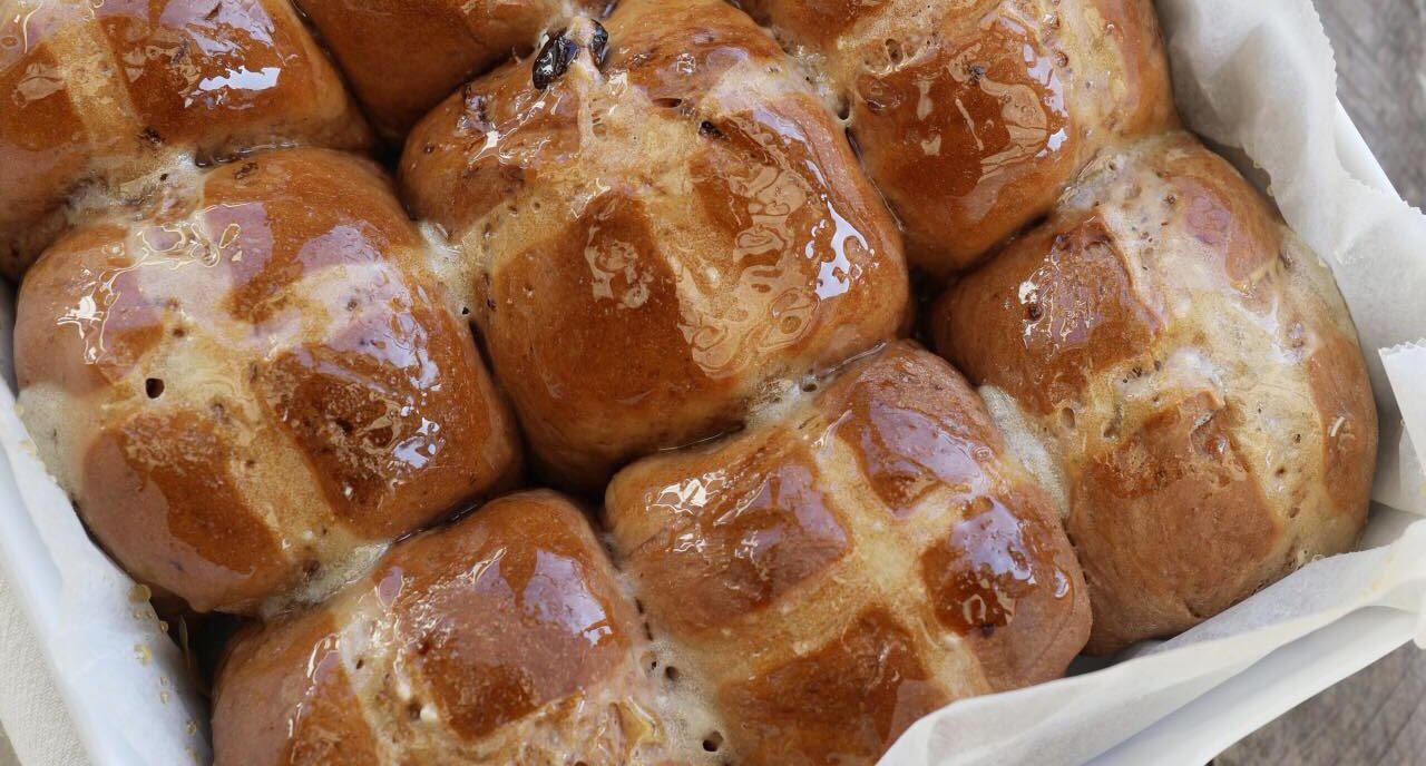 I England og de øvrige engelsktalende lande spiser man disse lækre krydrede Hot Cross Buns i dag – Langfredag! Det er en gammel tradition, og bollerne kan have fyld af rosiner, tranebær, syltet ingefær eller hvad man kan lide. Her er de bagt med kanel, kardemomme, stødt ingefær, rosiner og mørk chokolade. Perfekt til en kop eftermiddagste. Og man må gerne bage dem på andre dage 🙂 Nyd den smukke Langfredag!