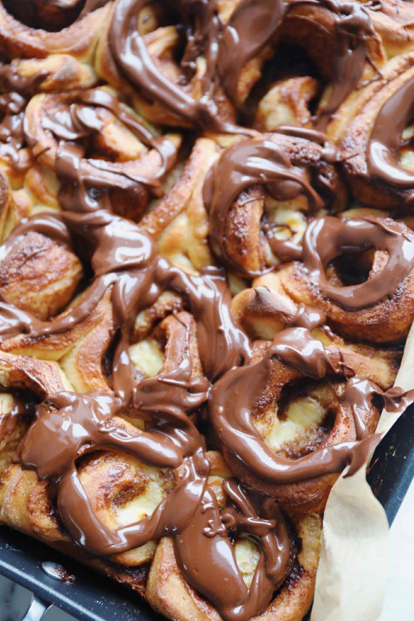 Kanelsnegle med creme og fløde – Opskrift på snaskede og lækre kanelsnegle med remonce, vaniljecreme, piskefløde og mørk chokolade. Disse snegle er lavet efter min meget populære opskrift på kanelsnegle bagt med fløde. Her har sneglene så også fået selskab af den lækreste vaniljecreme, som sprøjtes ned i midten af hver kanelsnegl. Sneglene overhældes med piskefløde og bages. Når sneglene er bagt og let afkølet, så pyntes de med en chokolade ganache, inden de kan nydes.