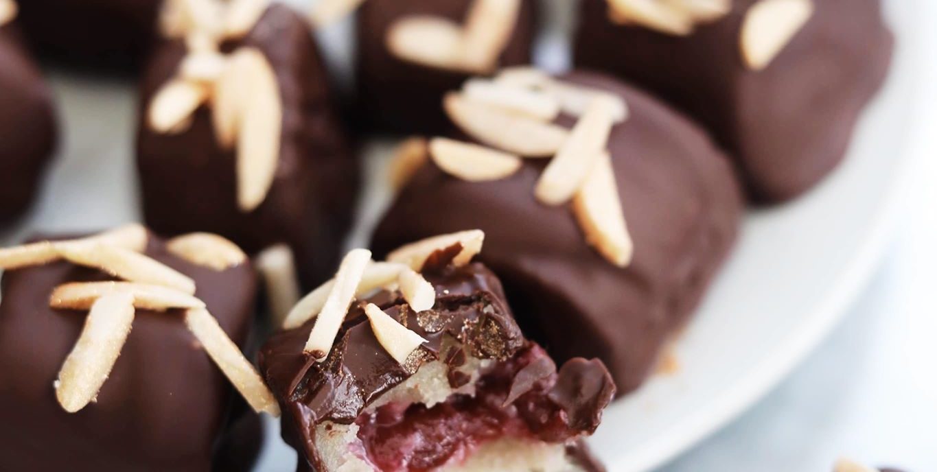 Konfekt med marcipan og kirsebær (ca. 12 stk.)Fremgangsmåde