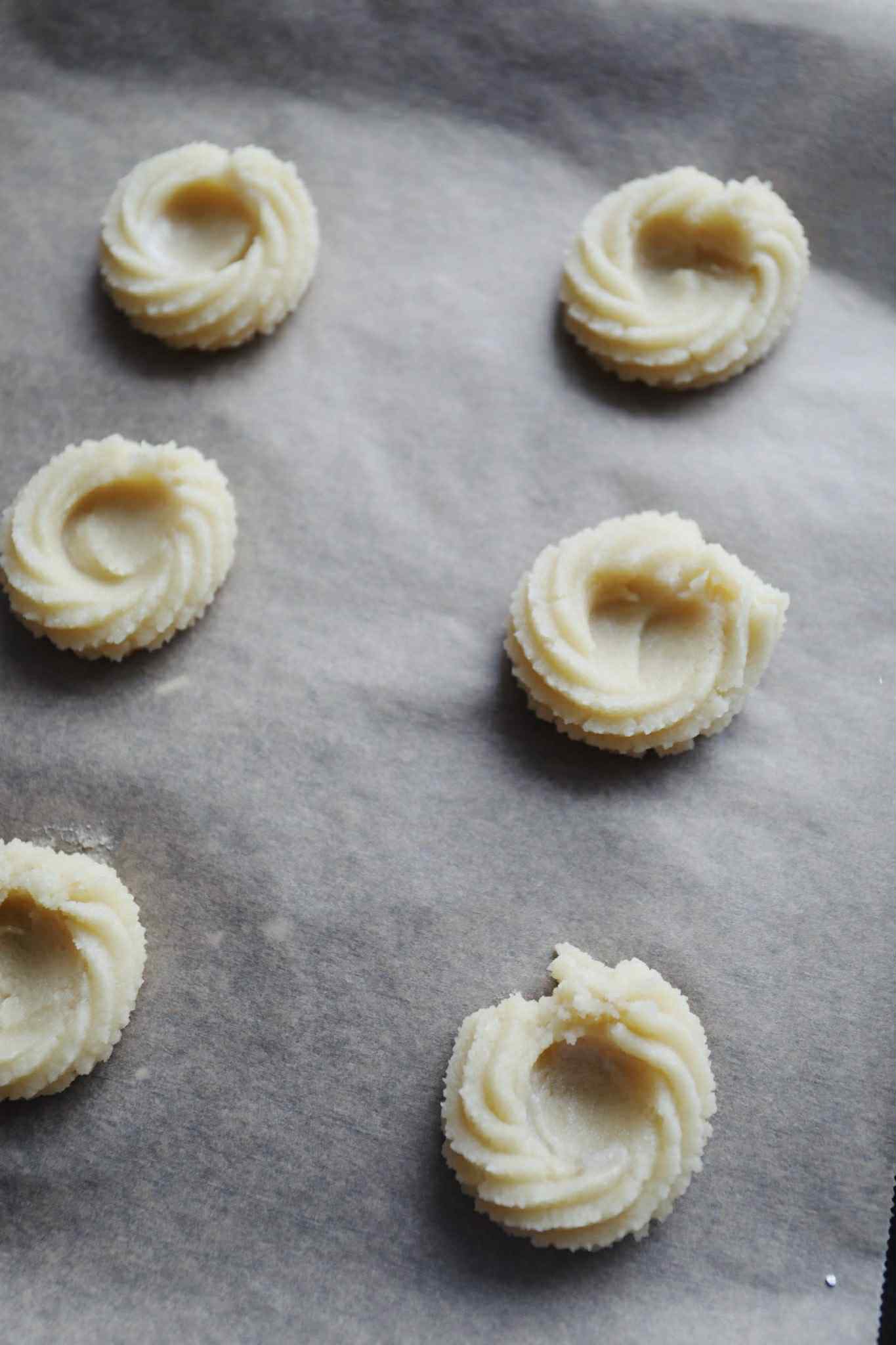 Tilsæt marcipan, flormelis og æggehvide i en foodprocessor. Kør det til en sammenhængende og klistret masse. Kom massen i en sprøjtepose med en stjernetyl.
