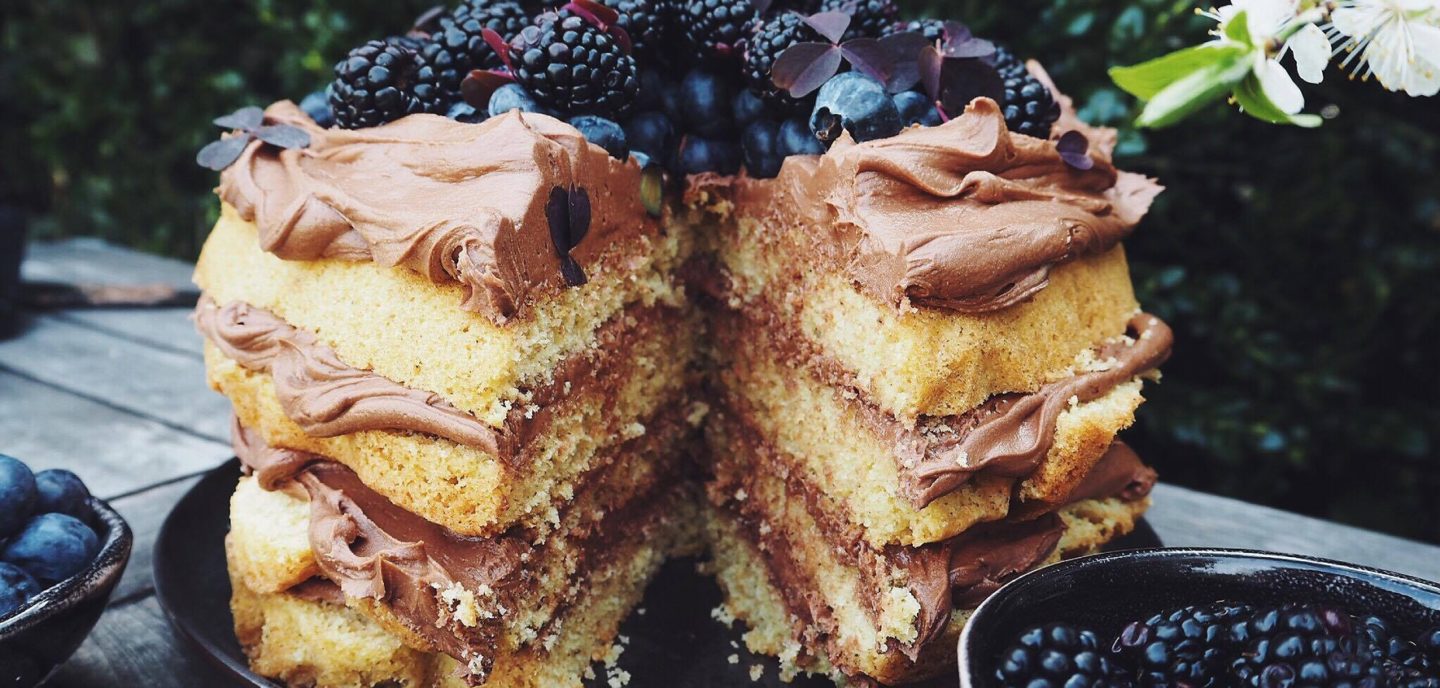 Lækker lagkage med chokoladesmørcreme!