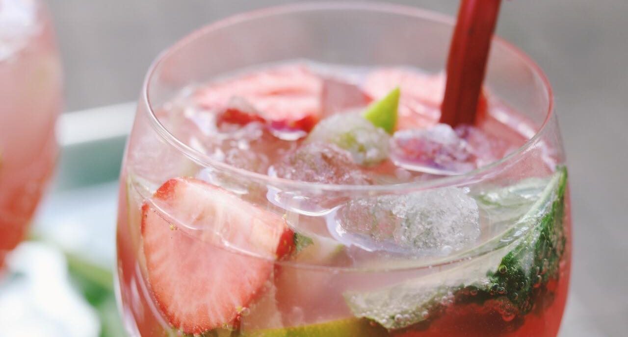 Fordel lime, mynteblade og rom i 2 store glas. Mos det godt sammen med en morter. Fordel rabarbersaft og danskvand i glassene og top med friske jordbær, knust is og rabarberstængler. Velbekomme!