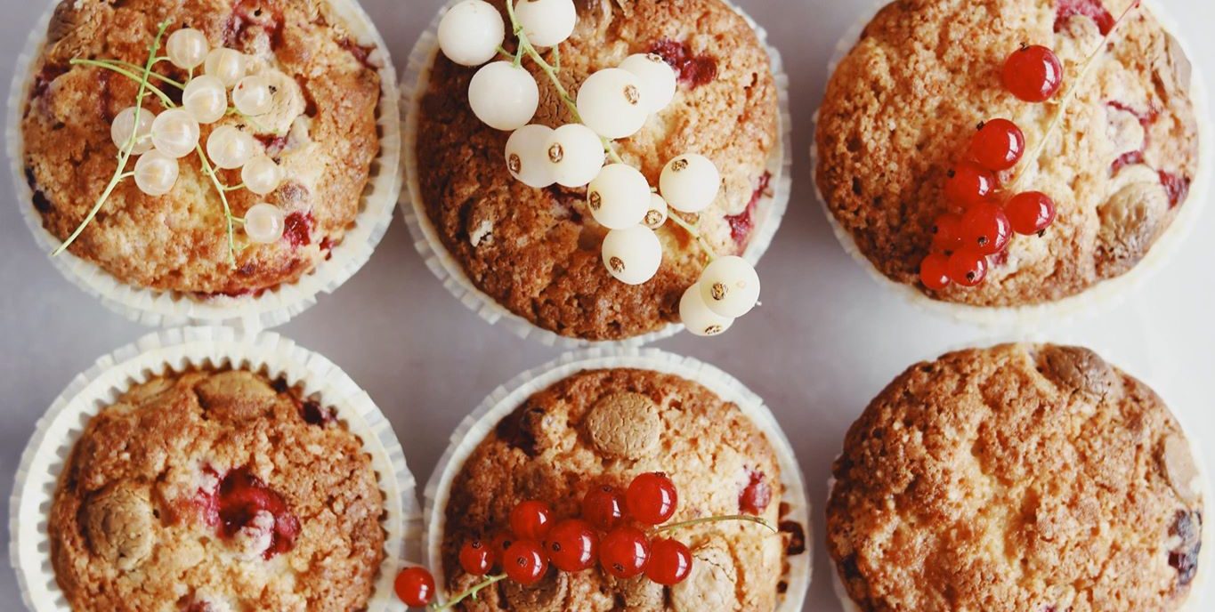 Muffins med ribs og hvid chokolade – opskrift på de lækreste muffins med røde ribs og hvid chokolade. Disse skønne muffins smager vidunderligt med de syrlige fra ribs, som er i sæson netop nu. Den søde hvide chokolade passer godt til de syrlige ribs og så karamelliserer chokoladen på toppen af kagerne, når de bliver bagt. Kagerne passer perfekt til eftermiddagshyggen eller til en skovtur. Ribs kan skiftes ud med andre bær f.eks. hindbær, solbær, brombær eller blåbær. Nyd kagerne med creme fraiche eller flødeskum. De kan nydes med det samme eller fryses ned. Rigtig god fornøjelse!