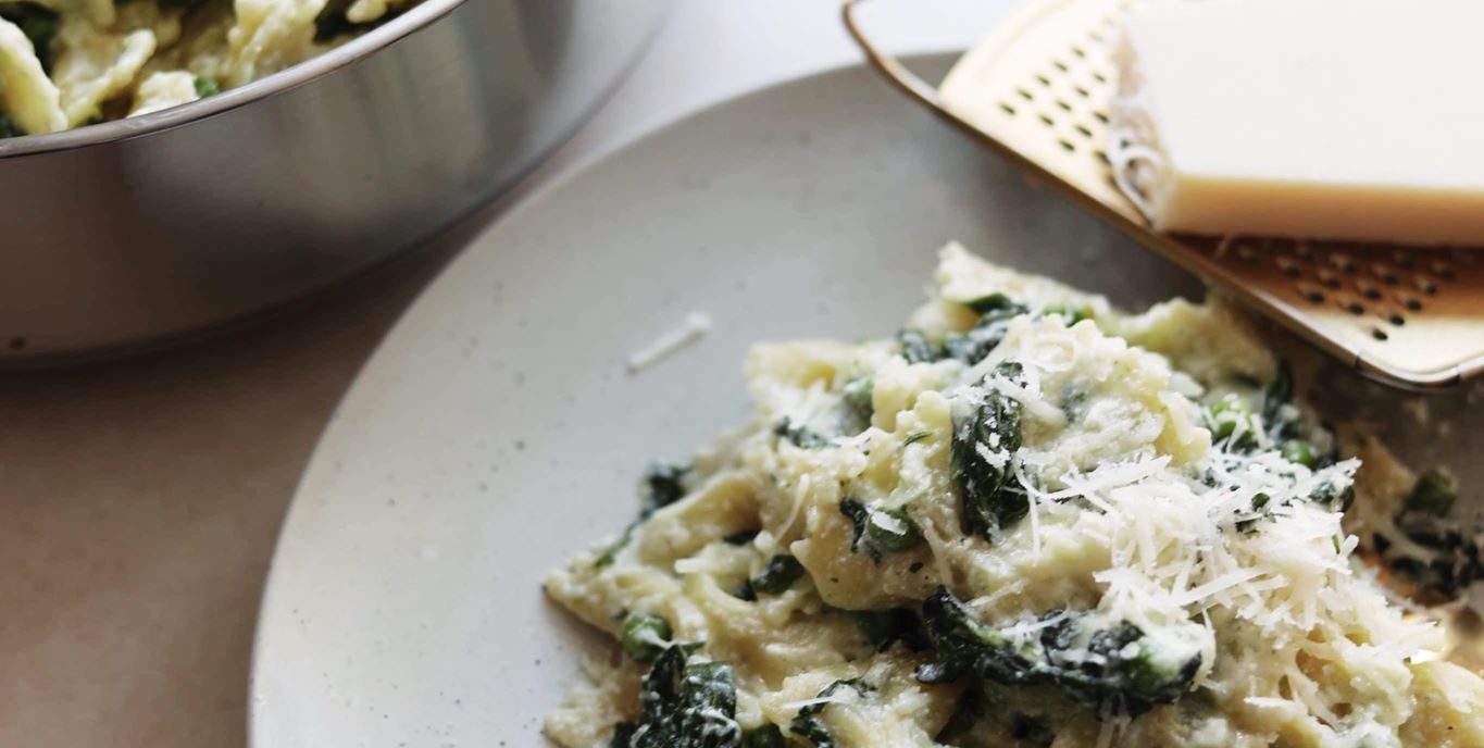 One pot pasta med spinat, ærter og ricotta