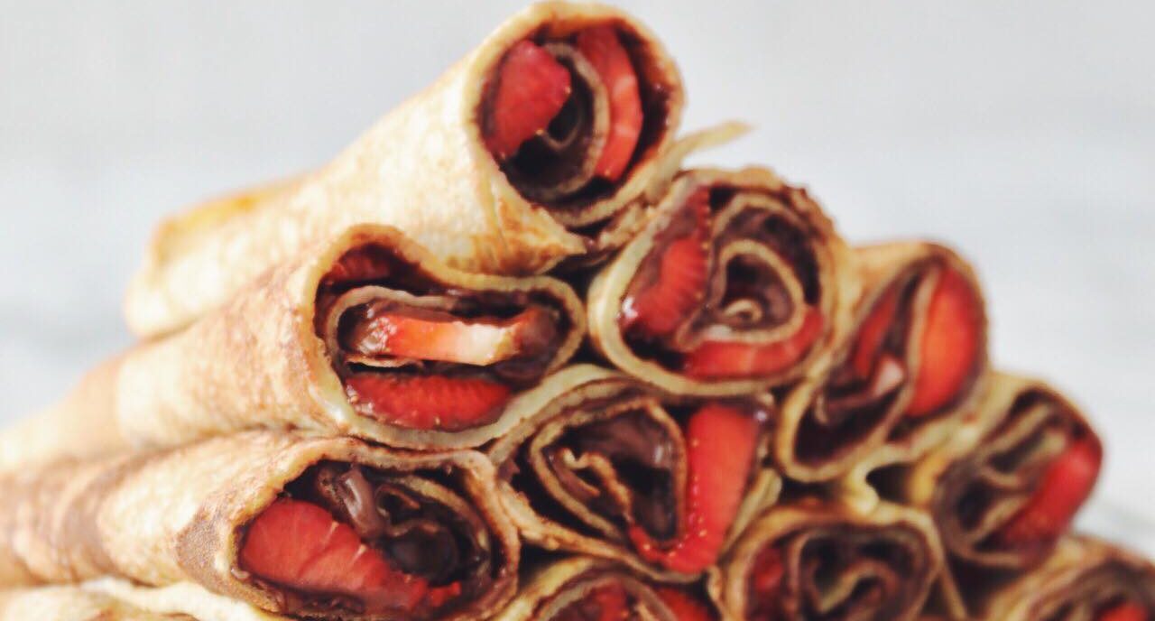 Pandekageruller med jordbær og Nutella