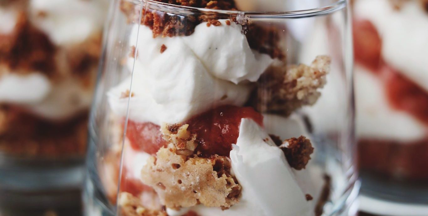 Rabarbertrifli med hjemmebagte makroner og bagt hvid chokolade