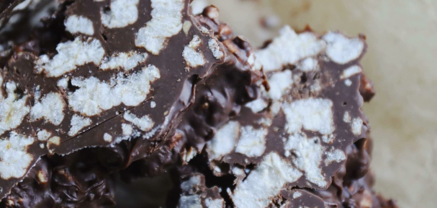 Riskikssnacks – Opskrift på lækre snacks med riskiks, chokolade, peanutbutter og honning. Disse riskikssnacks er så nemme at lave og virkelig gode. De består af smeltet mørk chokolade som blandes med peanutbutter, honning og knuste riskiks. Massen fordeles efterfølgende i en form og stille på køl, hvorefter den skæres ud i passende stykker. Det er så lækkert og en dejlig nem snack.