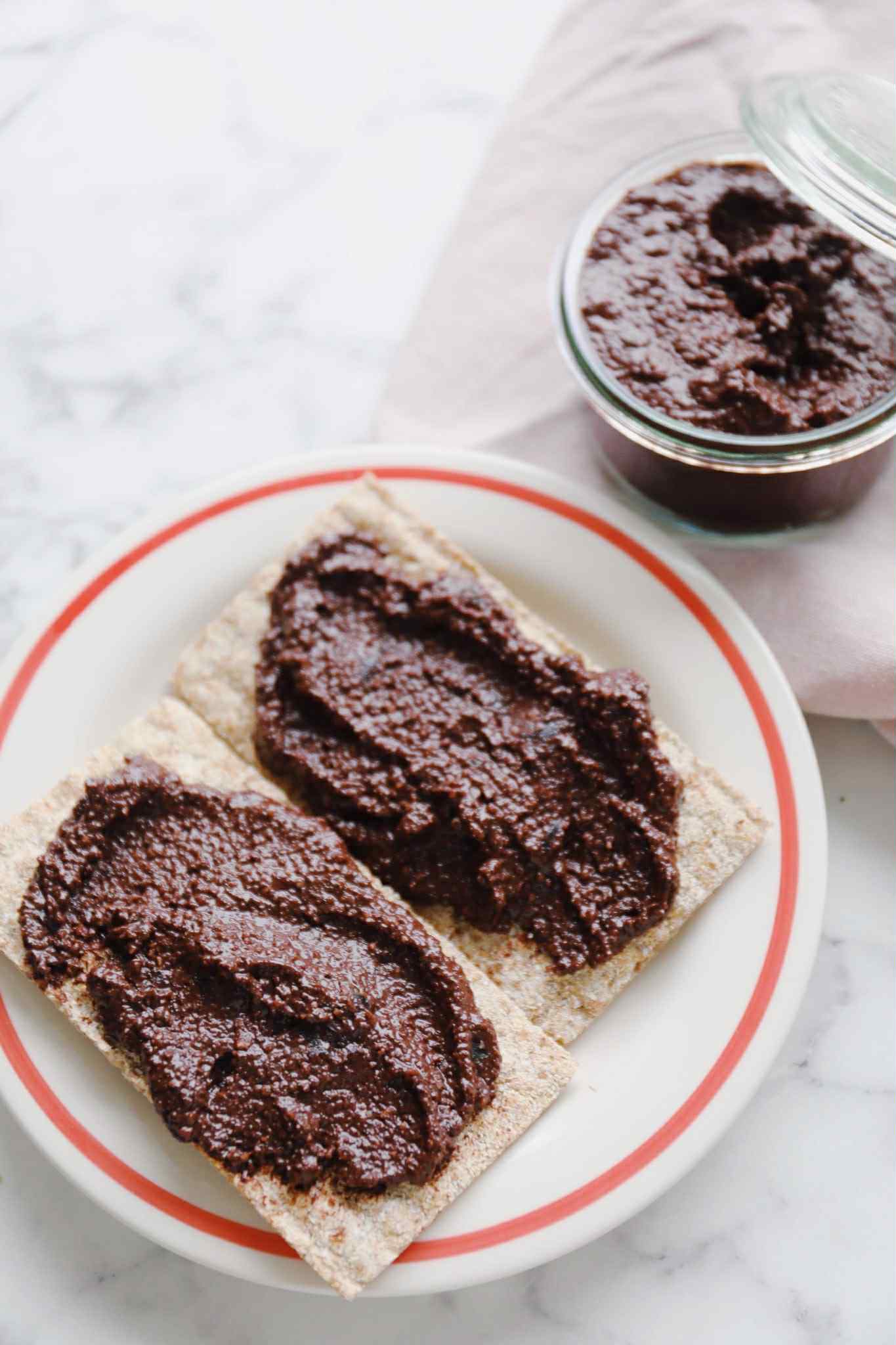 Sundere nutella – Opskrift på en sundere version af nutella/chokoladesmørepålæg med dadler, kakao og hasselnødder. Denne “Nutella” er en sundere version af den klassiske nutella, da der her er dadler og honning i samt kakao og hasselnødder. Hasselnødderne blendes først til fint mel, hvorefter der tilsættes juicy dadler, kakao, vaniljesukker, salt, honning og mælk. Det hele køres sammen til en ensartet og klumpfri masse. Herefter kan nutellaen hældes i et glas med låg, hvor den kan holde sig ca. 1 uge på køl.
